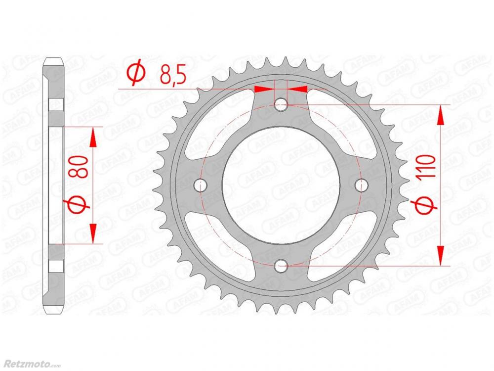 Couronne AFAM 42 dents acier pas 428 type 10235 Honda CBF125M