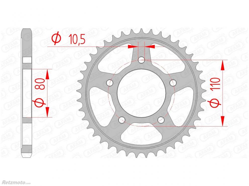 Couronne AFAM 36 dents acier pas 525 type 10504 Honda