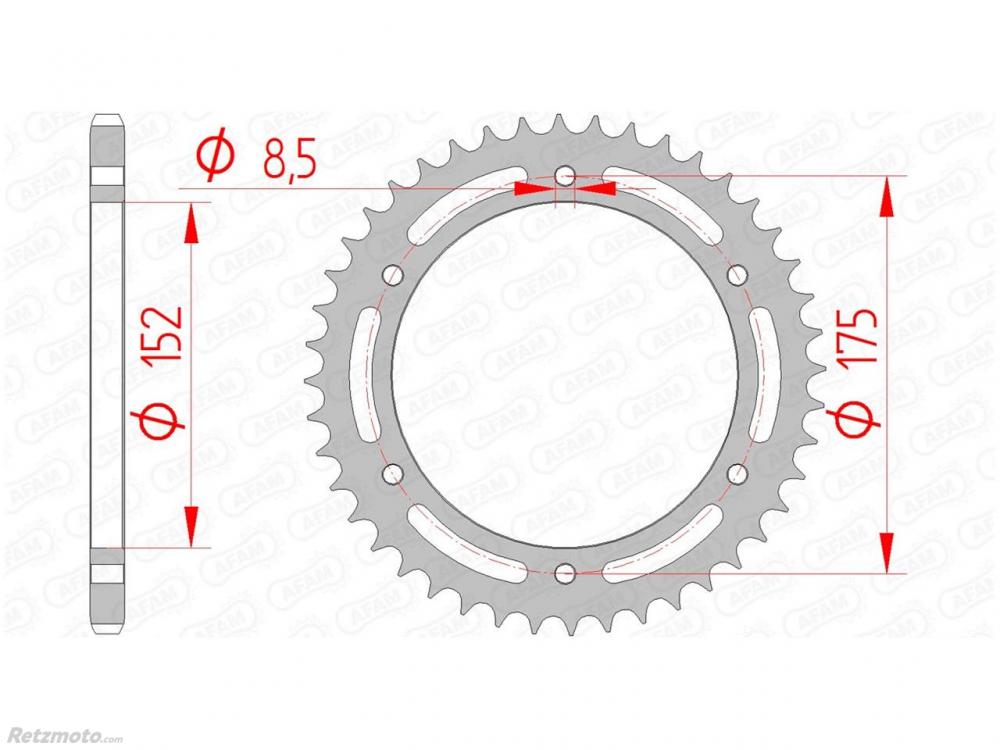 Couronne AFAM 44 dents acier pas 520 type 12301 Yamaha
