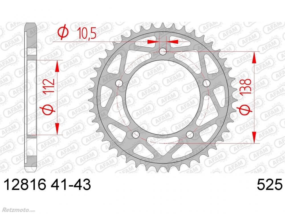 Couronne AFAM 42 dents acier pas 525 type 12816 Yamaha YZF-R1