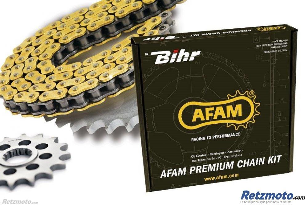 La marque AFAM, doté d'une technologie qui s'impose, celle ci développe et conçoit des chaines de transmission de haute qualité depuis 1975, et a acquis un savoir-faire particulier dans ce domaine. La marque renouvelle constamment ses technologies et produits, afin de vous proposer le meilleur pour la transmission de votre machine. Chaine type 520 XRR 3 Renforcée. Couleur : or. Attache semi-pressée. Joints toriques Xs-ring (technologie AFAM). Plaquettes allégées pour réduire le poids de la chaine. Excellent rapport qualité/prix. Pour usage TT et route de 125cc à 500cc.Les pignons AFAM sont fabriqués dans un alliage dacier très résistant et sont usinés avec grande précision. La qualité des pignons fait dAFAM une référence mondiale incontournable pour les éléments de transmission moto.Pignon acier standard. Finition et qualité haut de gamme. Contribue à la longévité de votre kit chaine. Compatible avec le modèle ci-dessous :